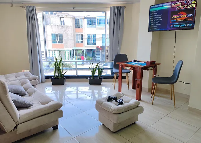 이 아파트는 툰하 시내에서 30분 거리에 있습니다. 이 숙소는 볼리바르 툰하 광장에서 자동차로 10분 거리에 위치해 있습니다. 손님께서는 200미터 거리에 있는 Mis Abuelos Helado Artesanal Natural에서 Zuid-Amerikaanse 간식과 식사를 즐기실 수 있습니다. 아파트는 Iglesia Santa Maria De La Paz에 가까운 거리에 있습니다.